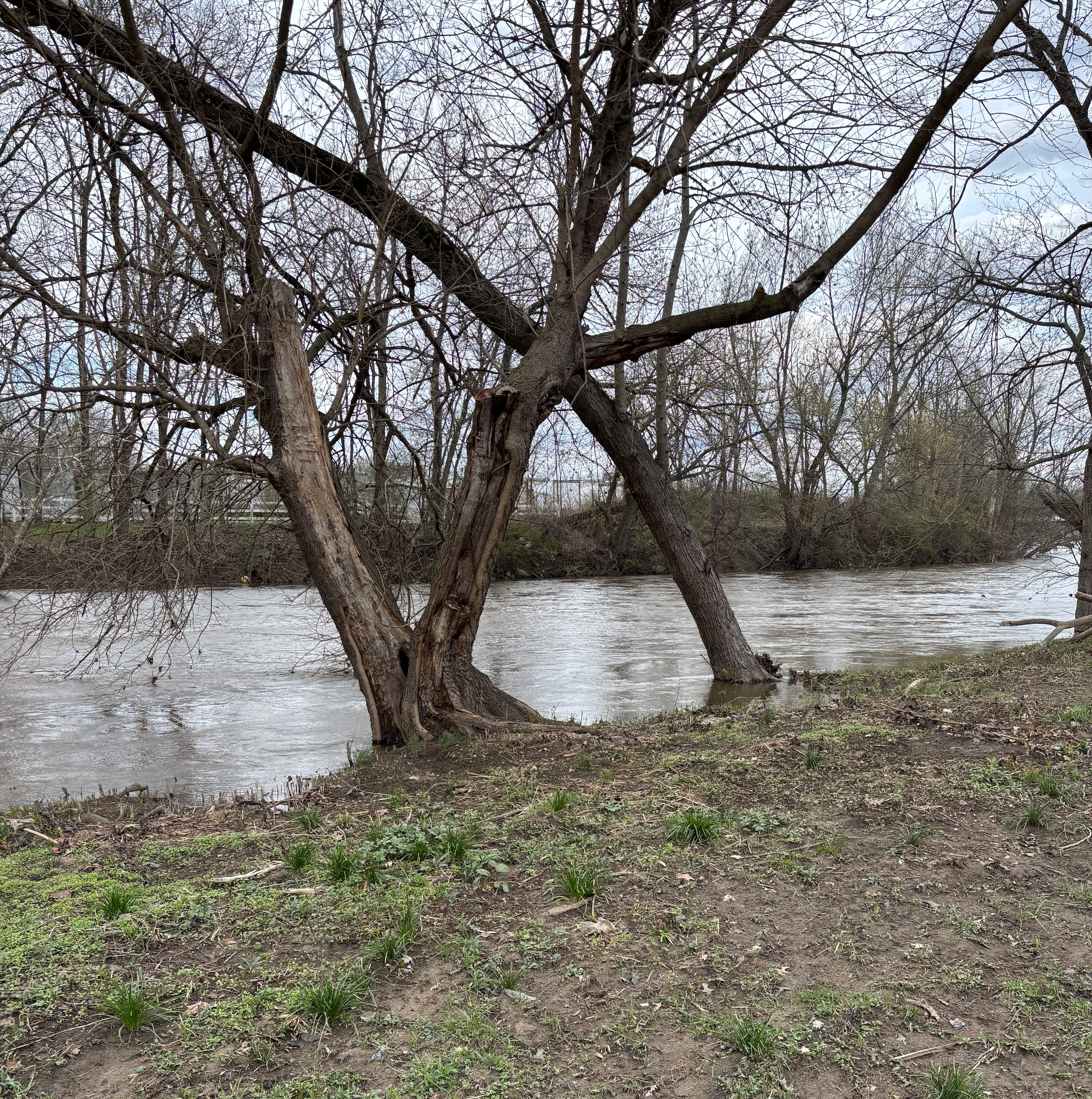 My goal for 2026 is to form a more personal bond with the Mahoning River, so yesterday, an unseasonably warm early April afternoon, I was drawn to Perkins Park. The newly cleaned-up river banks offered unobstructed views of the swollen stream.